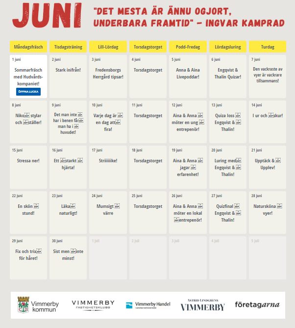 Vi kliver in i juni, det betyder att sista luckan i majs glädjekalender är öppna. Men misströsta inte nu är juni här, varma sommardagar, sommarlov och framförallt, en ny glädjekalender! Kika på vad våra egna quizmasters Engqvist & Thalin har att säga! Klicka er in på den nya Glädjekalendern med gamla favoriter som Torsdagstorg och […]